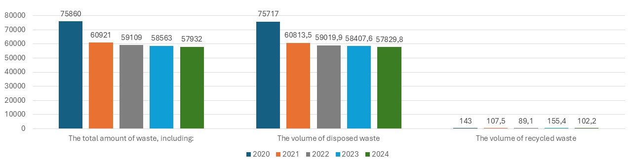 The company also sets specific quantitative targets for waste reduction on an annual basis. By 2025, a specific quantitative target has been set: a 2% reduction in the volume of waste subject to recycling and reuse compared to the 2024 level (see