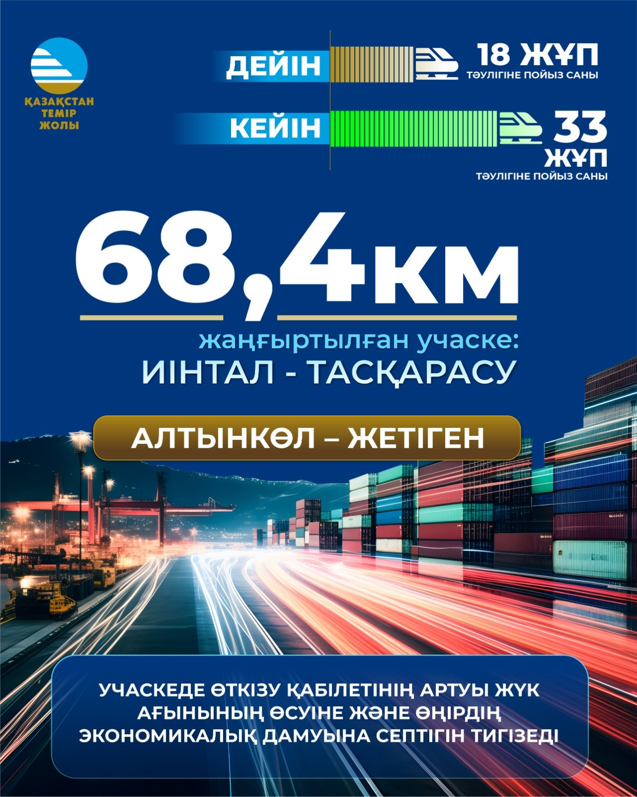 Алтынкөл – Жетіген учаскесін жаңғырту: өткізу қабілетінің өсуі және цифрлық басқару