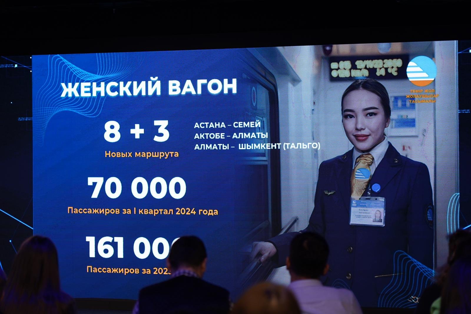 Национальный перевозчик провел опрос по дальнейшему развитию проекта «Женский вагон». В нем участвовало более 600 респондентов.  По итогу соцопроса принято решение запустить женские вагоны еще на трех маршрутах: №354/353 «Астана-Семей», №24/23 «Актобе — Алматы» и №25/26 «Алматы-Шымкент». В целом поезда с женскими вагонами будут курсировать по 11 маршрутам.  За первый квартал 2024 года свыше 70 тыс. женщин воспользовались услугой «Женские вагоны». Этот показать вырос в 2 раза по сравнению с аналогичным периодом 2023 года.
