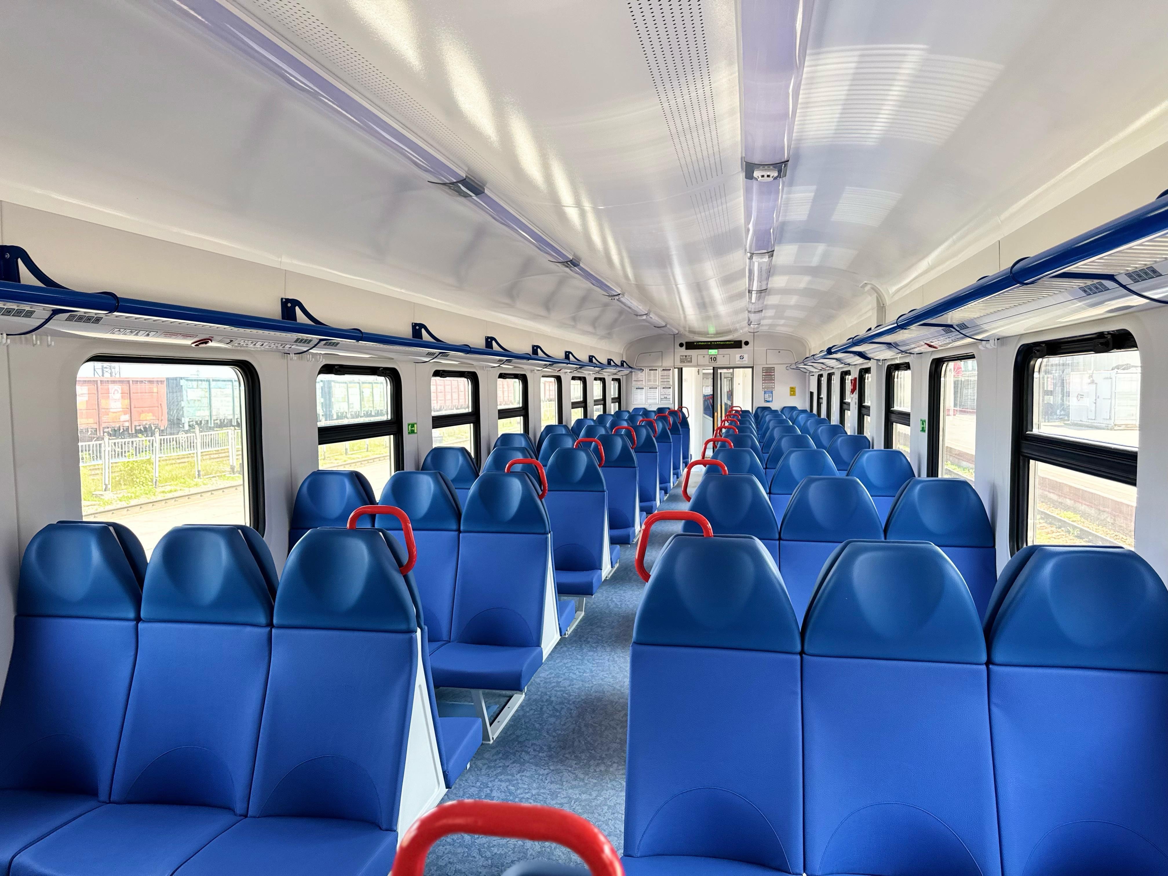 АО «Пассажирские перевозки» запускает новый электропоезд формата Comfort+ на маршруте №6857/6858 «Астана – Караганды». Новый состав третьего класса отличается повышенным уровнем комфорта и соответствует современным европейским стандартам. Электропоезд включает 6 вагонов и рассчитан на 576 посадочных мест. Салон выполнен в улучшенной планировке, оснащён комфортными креслами и современным интерьером.