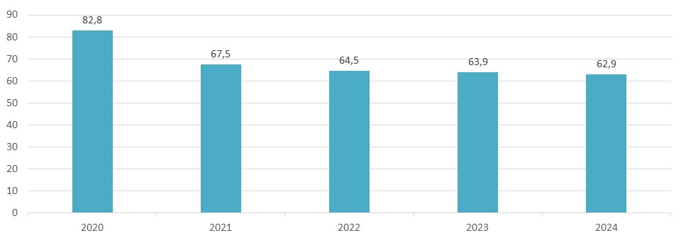 Динамика эмиссий в окружающую среду в период с 2020 по 2024 годы, тыс. тонн